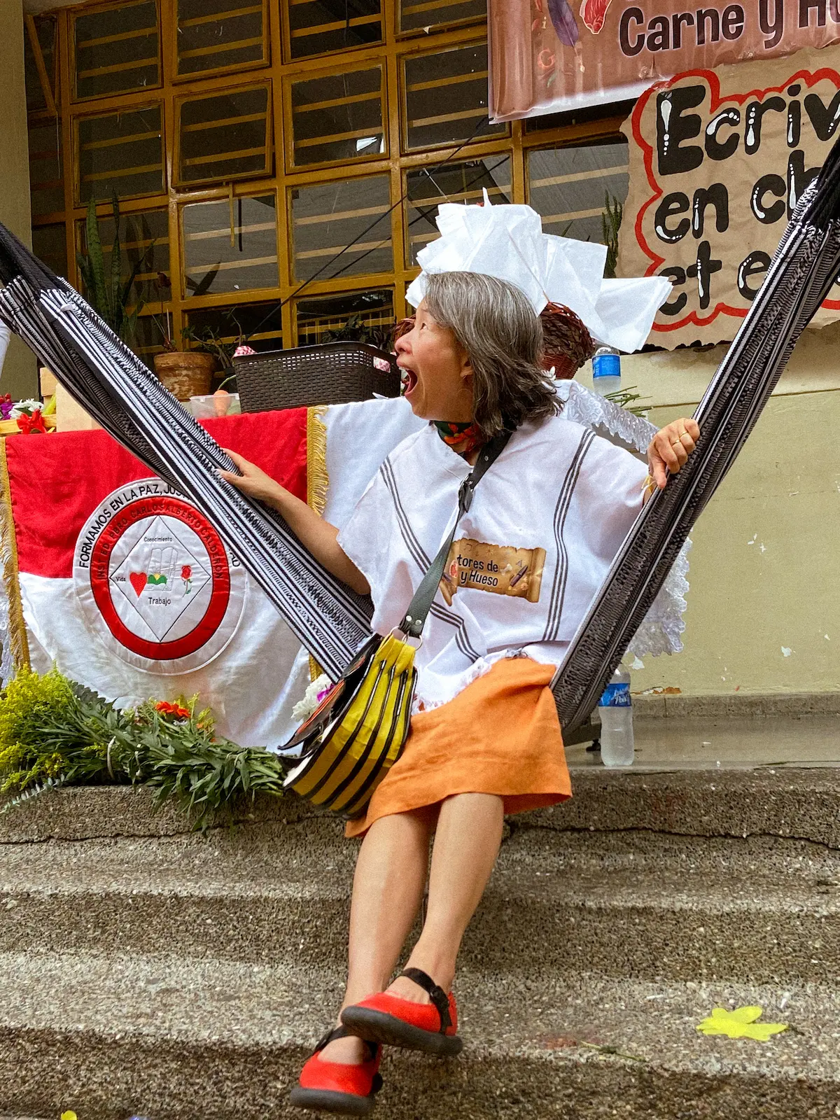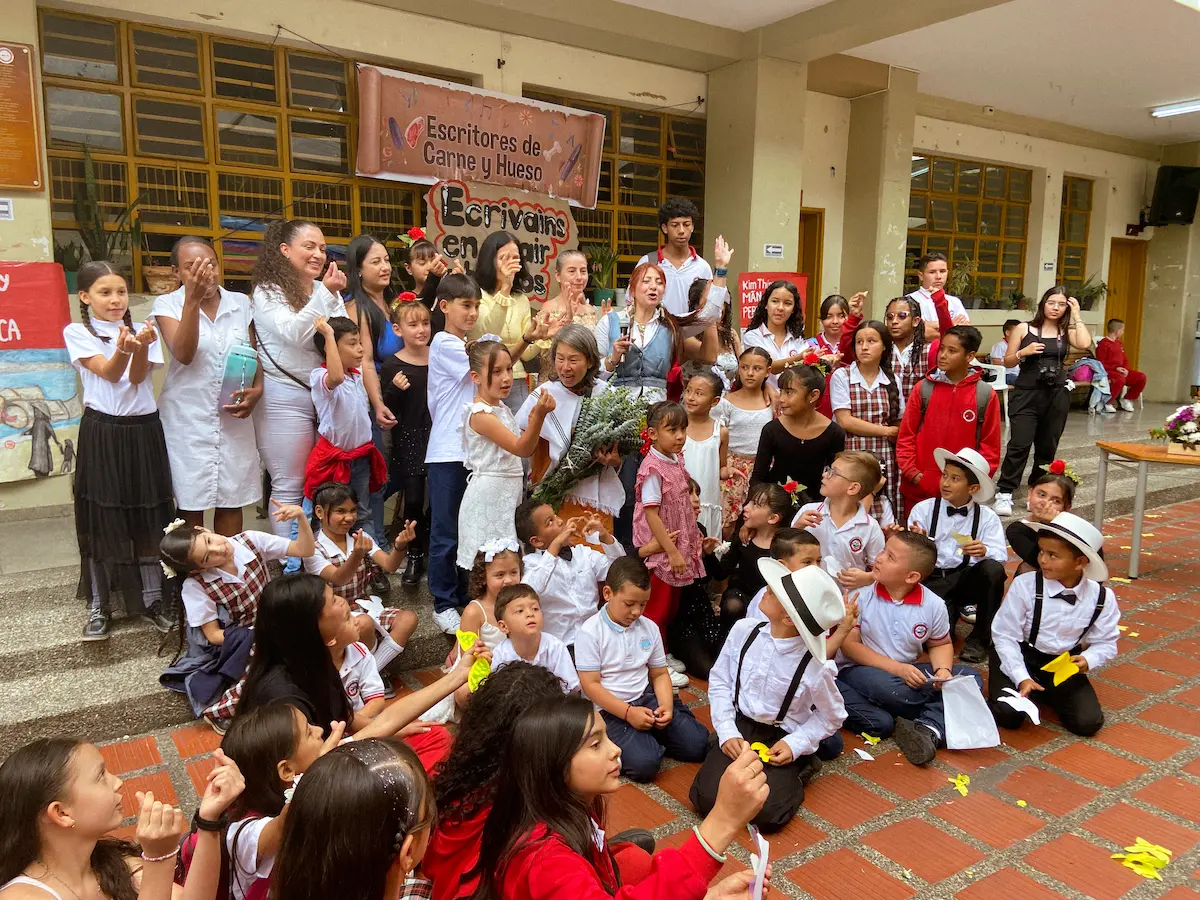 En la tarde, los estudiantes mayores presentaron una obra inspirada en sus libros. Escenas sobre la migración, la paz y la unidad se mezclaron con lecturas y representaciones que hablaban del deseo de los jóvenes de tener voz. A través del teatro, el baile y la palabra, los estudiantes tendieron un puente entre la historia de Kim y sus propias realidades, entre Vietnam y Medellín.
