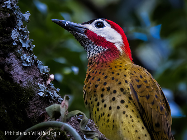 Sorprende a la vista cuando se deja ver, martillando y trepando los troncos de los árboles, con su plumaje festivo.