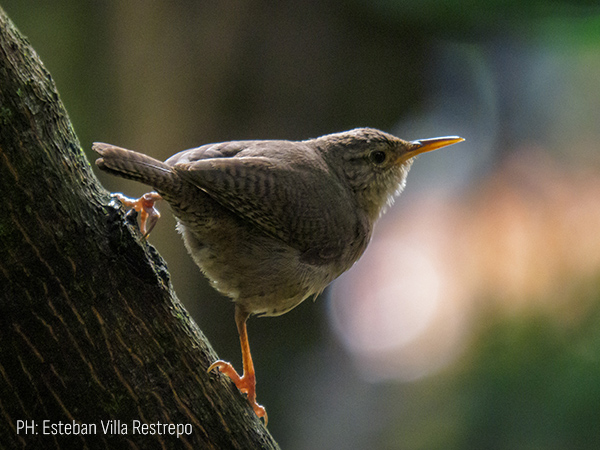 Ave pequeña y redondeada, de color café claro. Se le ve saltando entre los arbustos o en las hojarascas en busca de insectos para alimentarse.