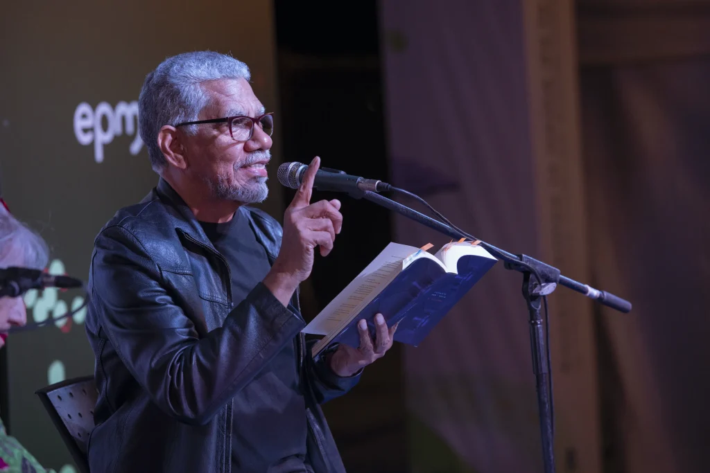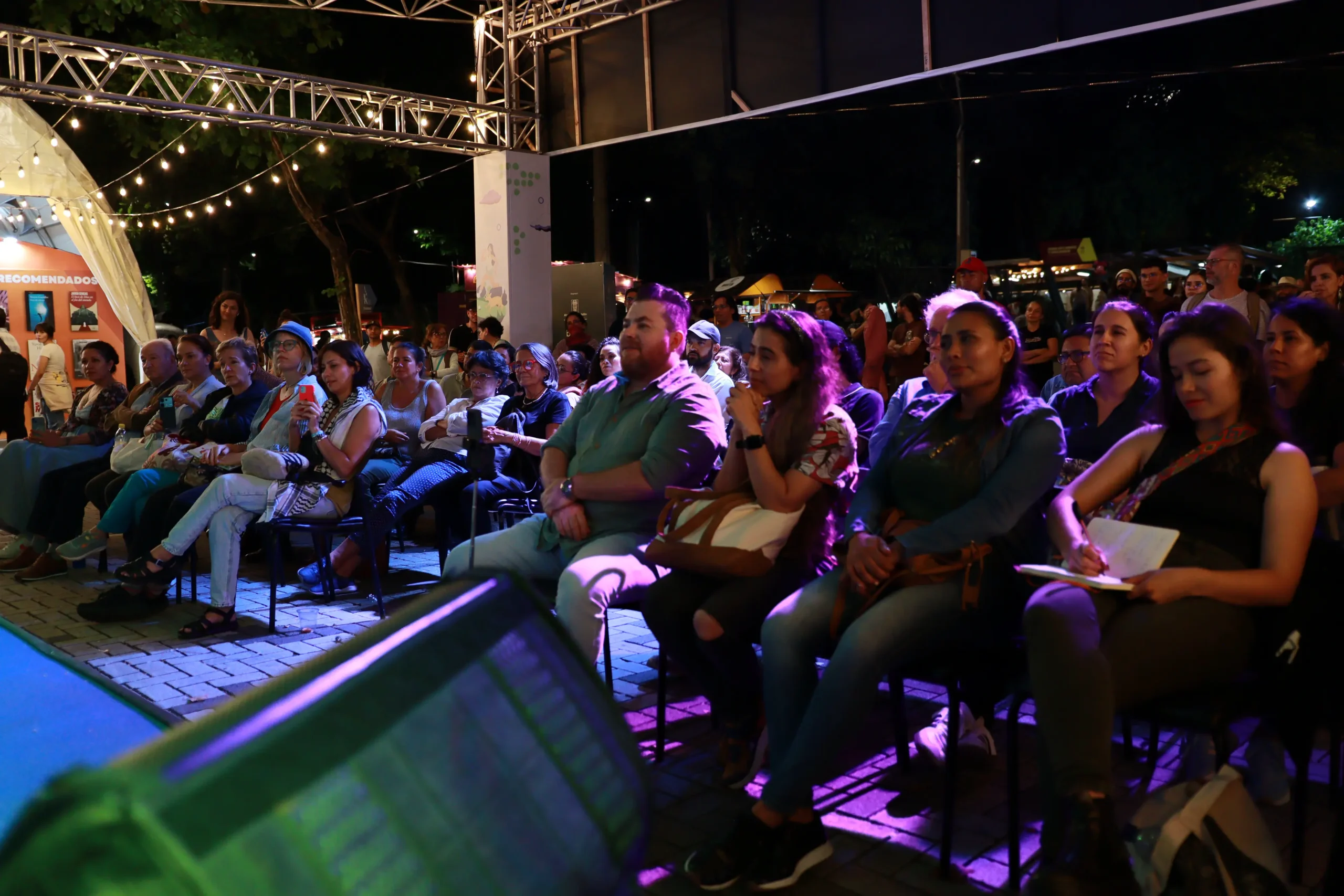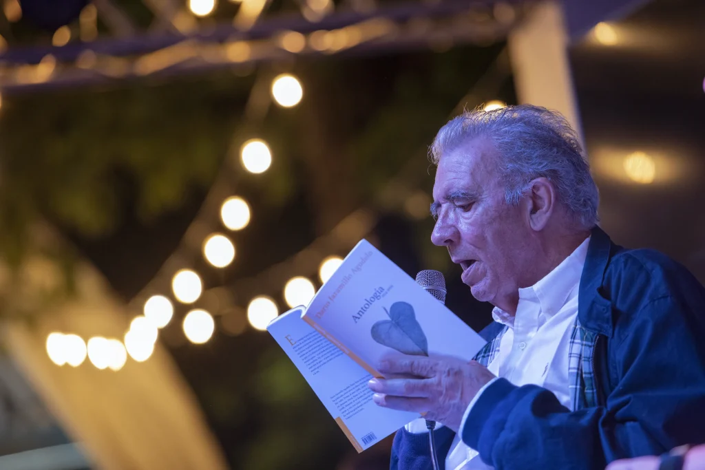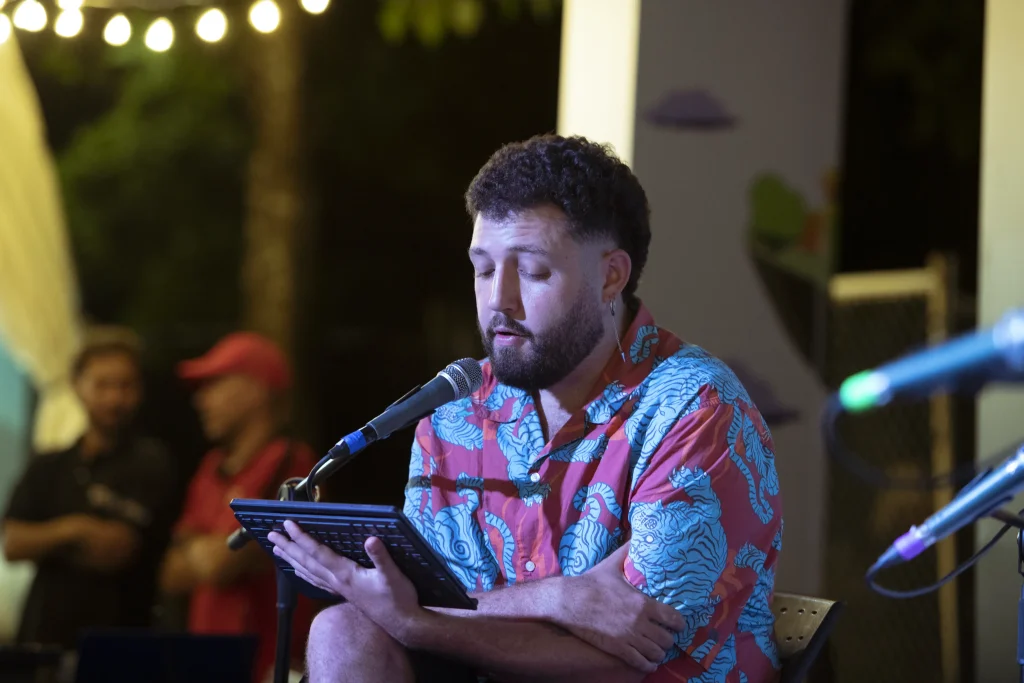 La poesía iluminó el cierre de cada jornada con voces que cruzaron geografías, generaciones y sensibilidades. Poetas de Colombia, España, México, República Dominicana y Argentina compartieron sus versos en un encuentro íntimo con el público, donde la palabra se convirtió en lumbre y lo imposible se hizo presente. Fue un espacio donde la poesía encontró su lugar en medio del movimiento, las risas y conversaciones que venían y se iban. Las voces poéticas lograron abrirse camino, sostenerse, invitar al silencio por un momento. Allí, la palabra se hizo presencia, leve y persistente, como una chispa que atraviesa la noche.