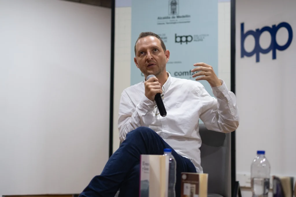 Santiago Espinosa respondió trayendo las palabras del filósofo y ensayista estadounidense Ralph Waldo Emerson: “Todo lenguaje es poesía fosilizada”. Con esta frase abrió el camino hacia la idea de que, en su origen, cada palabra fue un acto poético. Relámpago, lluvia, susurro: todas nacieron del asombro ante el mundo. Para Santiago, el poeta es quien recuerda ese brillo perdido, quien devuelve al lenguaje su capacidad de nacer de nuevo. Las buenas palabras —decía— continúan su viaje; las malas se quedan quietas, pesadas. La poesía, para él, no es ornamento ni rima forzada, sino esa chispa misteriosa que hace que una palabra suene como si fuera dicha por primera o por última vez.